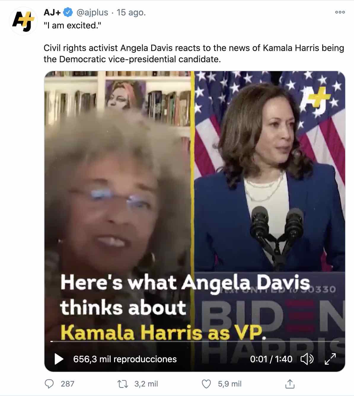 encanta la reacción de Angela Davis a la elección de Kamala Harris como